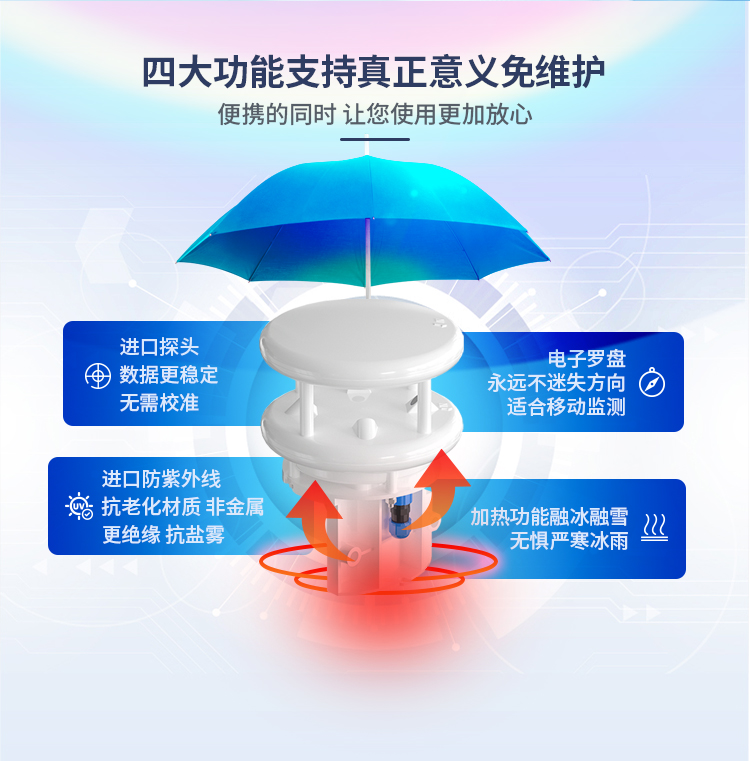 DC-21系列超聲波風速風向傳感器采用先進的超聲波技術,能夠實時、準確地測量風速和風向,為氣象預報、環境監測、風能利用等領域提供可靠數據支持。無論是復雜多變的自然環境,還是嚴格要求的工業環境,都能確保測量結果的準確性和可靠性。