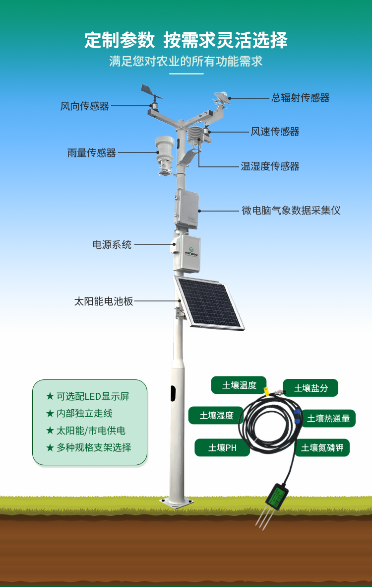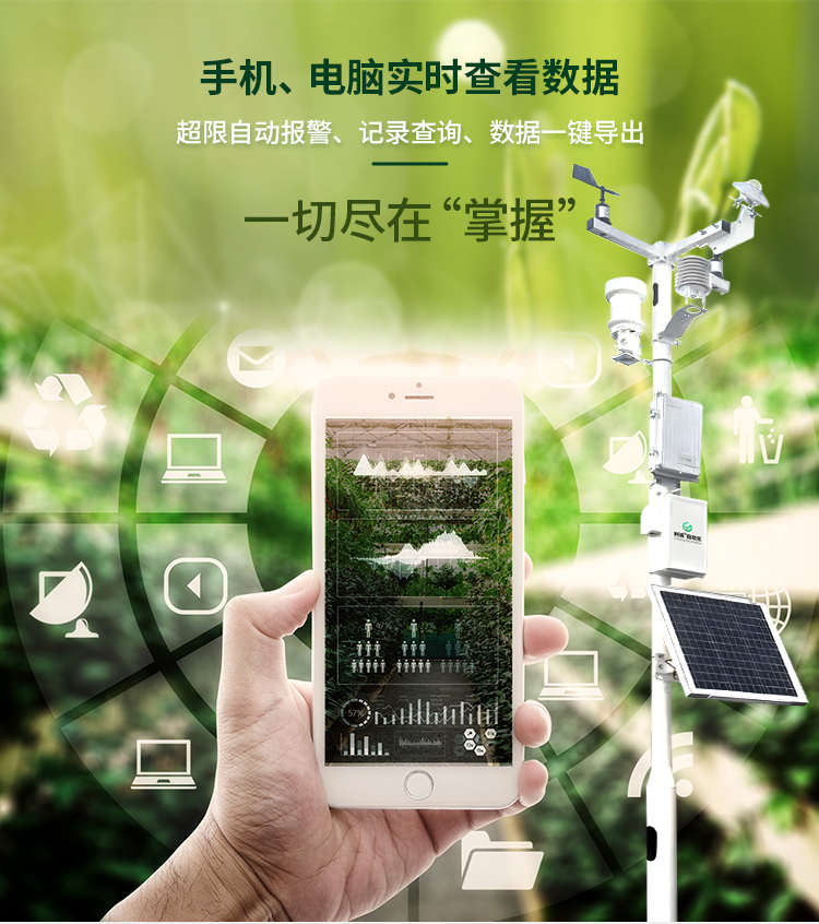 智慧農(nóng)業(yè)監(jiān)測(cè)氣象站作為現(xiàn)代農(nóng)業(yè)管理的得力助手,集成了高精度傳感器和先進(jìn)的數(shù)據(jù)分析系統(tǒng),能夠?qū)崟r(shí)監(jiān)測(cè)和記錄溫度、濕度、風(fēng)速、風(fēng)向、降雨量等關(guān)鍵氣象數(shù)據(jù)。這款產(chǎn)品不僅為農(nóng)業(yè)生產(chǎn)提供了科學(xué)的決策依據(jù),有效預(yù)防氣象災(zāi)害對(duì)農(nóng)作物的威脅,還能幫助農(nóng)民優(yōu)化種植方案,提高產(chǎn)量和品質(zhì)。無(wú)論是大型農(nóng)場(chǎng)、農(nóng)業(yè)合作社,還是個(gè)體農(nóng)戶,農(nóng)業(yè)氣象站都能發(fā)揮其獨(dú)特的價(jià)值,助力農(nóng)業(yè)生產(chǎn)的現(xiàn)代化、智能化和精準(zhǔn)化。