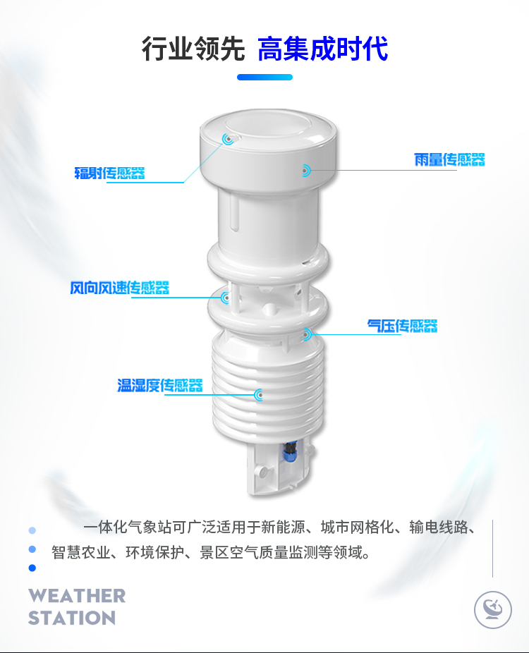 一體化環境監測儀是一種集成了多個氣象傳感器、數據采集器、數據處理系統等設備的新型氣象觀測設備。用于監測多個氣象參數,如溫度、濕度、氣壓、風速、風向、降水量、輻射等。這些參數能夠提供全面的氣象信息,用于氣象預測、氣候分析和天氣監測。智能化和物聯網技術的結合將使得一體化氣象站更加精準、高效地提供氣象數據,為各個領域的發展提供有力支持。