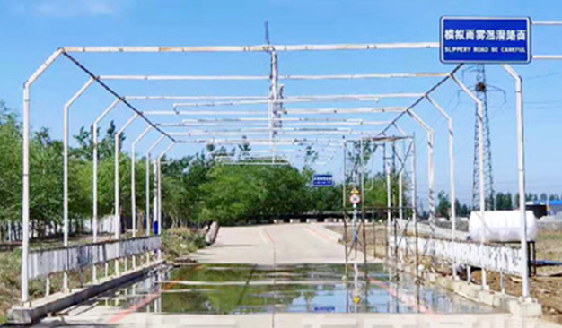 除了模擬高速公路,模擬隧道外,雨霧天氣濕滑路的考試場地也是切實考察駕駛員在能見度低和濕滑路面的駕駛能力,用最真實的道路環(huán)境考察駕駛員的駕駛技能。