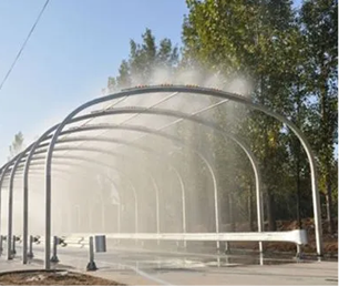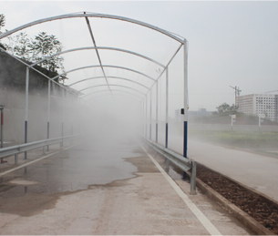降雨的霧化主要是靠路雨水擊打螺旋式旋轉(zhuǎn)噴頭霧化,該霧化方式是通過管路系統(tǒng)內(nèi)帶有一定壓力的雨水擊打螺旋式旋轉(zhuǎn)噴頭,從而達到預(yù)設(shè)散步角度的霧化