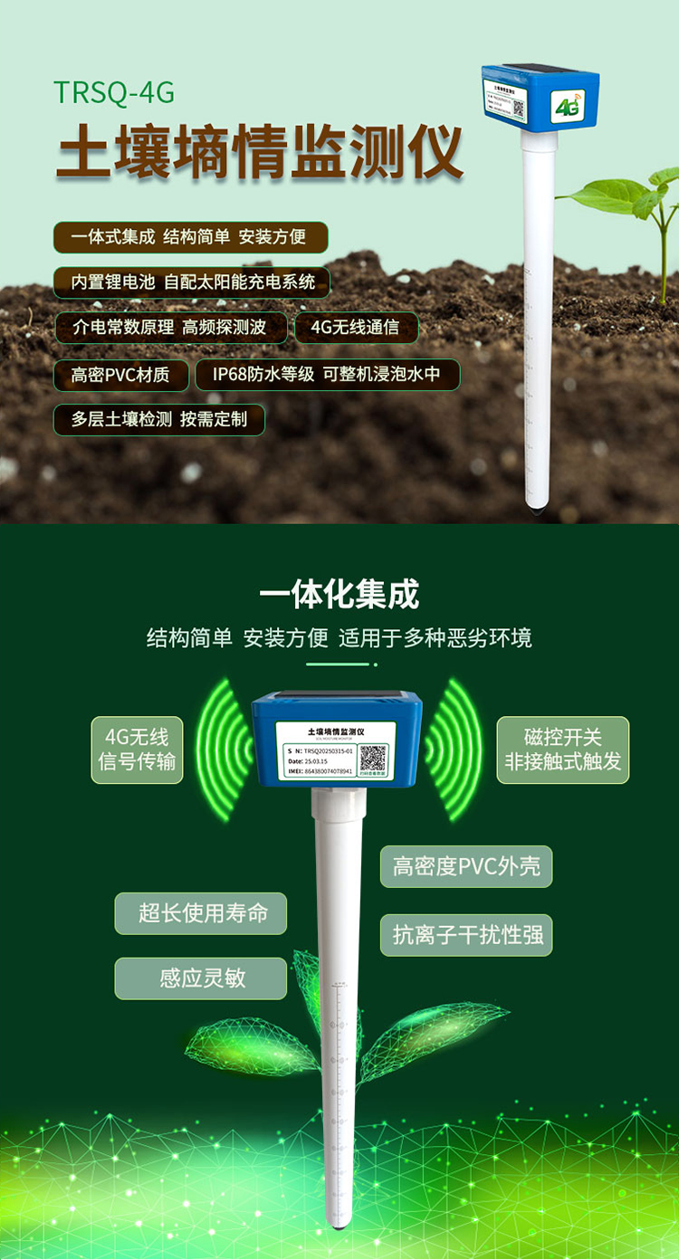 我司自主研發的土壤墑情一體化設備是一種用于土壤生產環境實時在線檢測的設備,它集成了傳感器技術、數據采集與傳輸技術,能夠實時監測土壤中的水分含量以及溫度參數,為農業生產提供關鍵數據支持。設備采用太陽能電池板+蓄電池的組合供電方式,確保長期穩定運行的同時減少能源消耗。使用高精度傳感器,能夠準確測量土壤中的水分含量和溫度,確保數據的可靠性。通過無線4G網絡或有線傳輸,將數據傳輸至云端或用戶終端,用戶可以通過手機或電腦遠程隨時遠程訪問和分析數據。