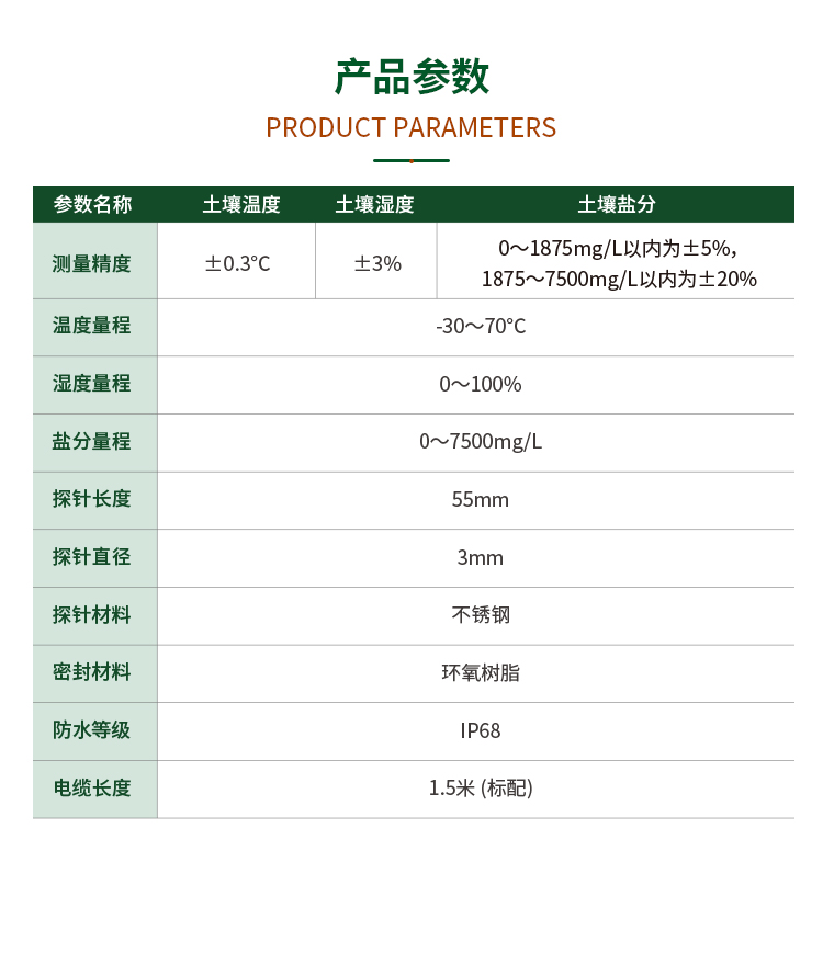 DC-TWS2土壤溫濕鹽傳感器是一款高精度、高穩定性的監測設備,能夠實時測量土壤中的溫度和濕度,為農業生產、園藝管理、環境科學等領域提供精準數據支持。其應用場景廣泛,如智能溫室、農田灌溉系統、土壤修復項目中,它都發揮著至關重要的作用,幫助用戶實現精準調控,優化植物生長環境,提高農作物產量和質量。