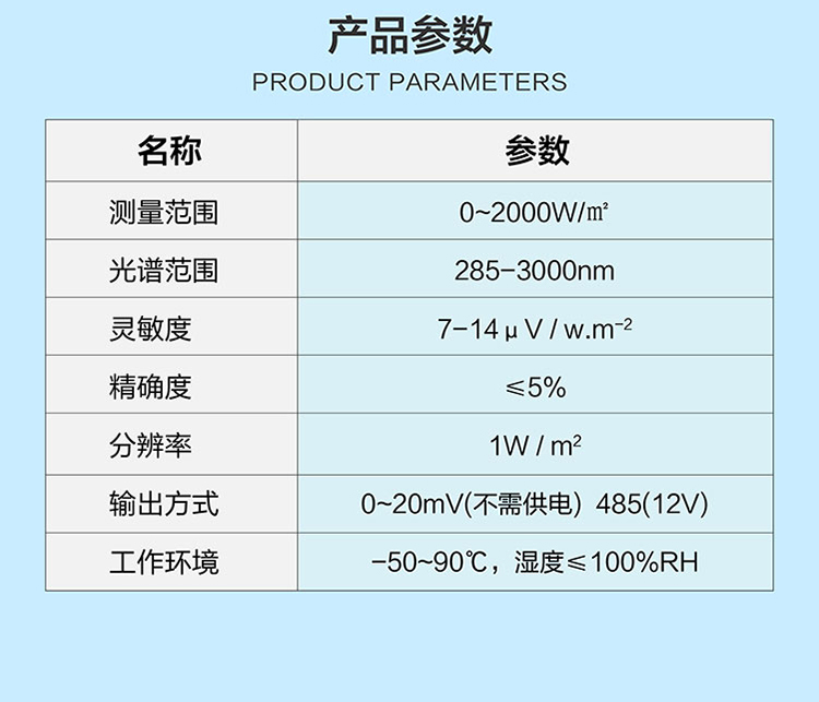 TBQ-2C-1太陽總輻射傳感器(classC)是一種專門用于測量太陽輻射能量的設備。它能夠精確感知太陽輻射的強度和能量變化,并將光能轉化為電信號,通過電路和算法處理得出太陽輻射的相關數據。根據工作原理的不同,太陽輻射傳感器主要分為光電式和熱電式兩種。