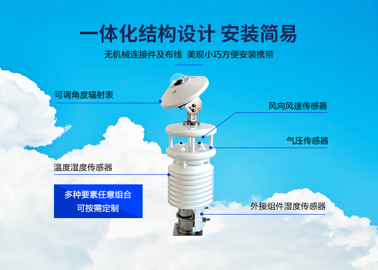 一體式光伏環境監測儀是專業針對光伏發電站研發生產的一體化光伏環境監測儀,該設備采用新型一體化結構設計,測量精度高,安裝使用方便,采用獨特的一體化超聲波微氣象儀,集溫濕度、風速、風向、壓力、背板溫度集成于一體。具有高精度,高穩定性,是目前非常適合光伏發電站上使用的一體化光伏環境監測儀。